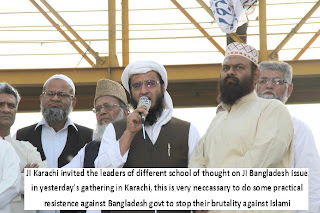 JI Karachi invited the leaders of different school of thought on JI Bangladesh issue in yesterday’s gathering in Karachi, this is very neccassary to do some practical resistance against Bangladesh govt to stop their brutality against Islami